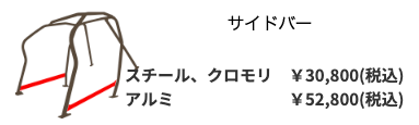 - 車検: 2名乗車タイプ、トランクスルータイプ共にロールバーパットを巻く必要があります。(ロールバーパットは別売です。)