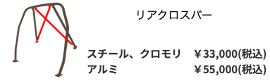 - 車検:ロールケージにロールケージパッドを巻く必要があります。(ロールケージパッドは別売です。)