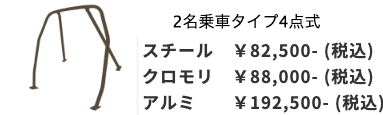 - 車検: 2名乗車タイプ、定員乗車タイプ、3点式タイプ共にロールケージパッドを巻く必要があります。(ロールケージパッドは別売です。)