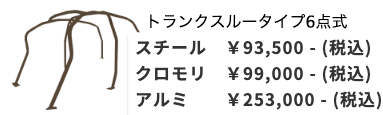 - 付属品:当て板、ボルトセット。トランクスルータイプにはボルト付きプレートが付きます。トランクスルータイプの取付には溶接加工が必要となります。